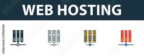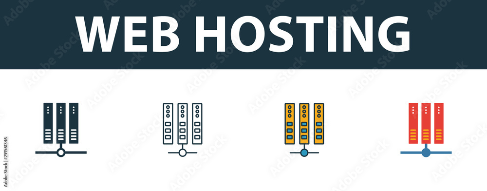 Wall mural web hosting icon set. four simple symbols in diferent styles from web hosting icons collection. crea