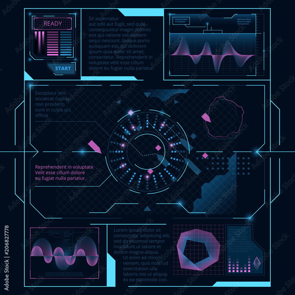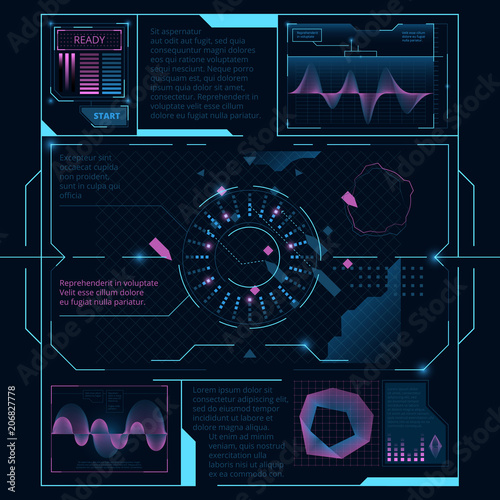 Wall mural web interface for display on screen for spaceship. hud ui