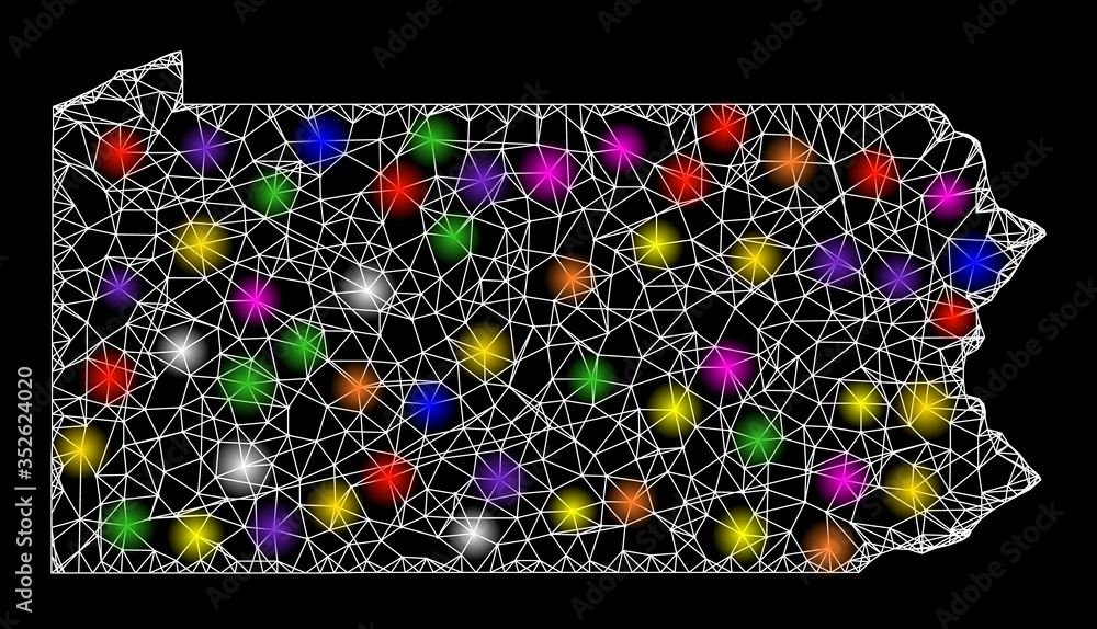 Wall mural web mesh vector map of pennsylvania state with glare effect on a black background. abstract lines, l