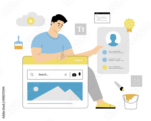 Wall mural web page design and website development. man designer building website interface. vector illustratio - Wall murals Wall mural web page design and website development. man designer building website interface. vector illustratio - Wall murals