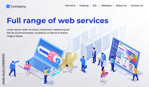 Web page design template for web studio in the modern 3d isometric style - choosing and buying a domaWall mural