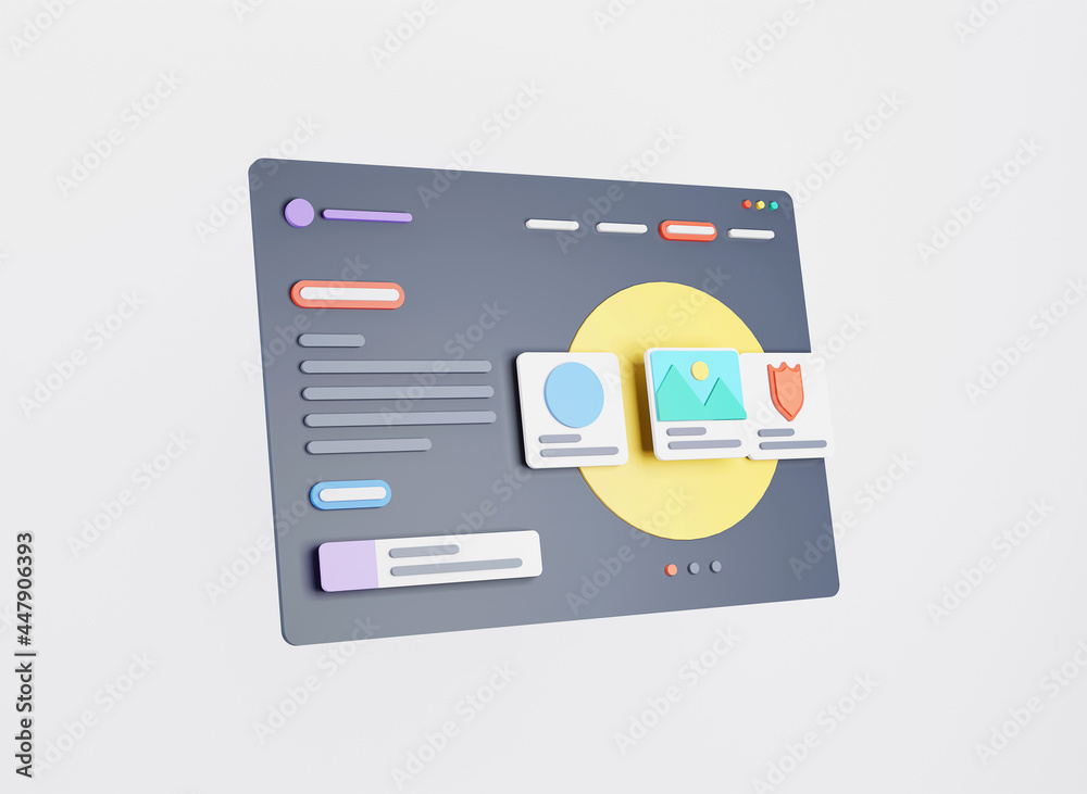 The watermark will not be included on Wall mural.: Web page interface design - web design and web development concept - user interface optimization - 3d r