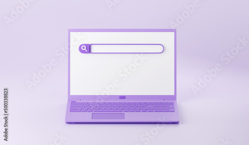 The watermark will not be included on Wall mural.: Web search bar on laptop screen 3d render - illustration of website form for research of information