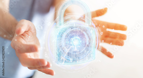 Wall mural web security protection interface used by businessman 3d rendering - Wall murals Wall mural web security protection interface used by businessman 3d rendering - Wall murals