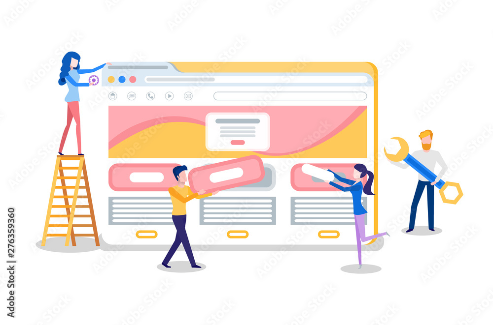 Wall mural web site creation, browser and online page, internet tab. programmer adding details to website, woma