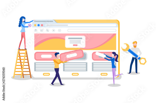 Wall mural : Web site creation, browser and online page, internet tab - programmer adding details to website, woma