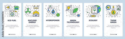 The watermark will not be included on Wall mural.: Web site onboarding screens - ecology and green energy technology - menu vector banner template for we