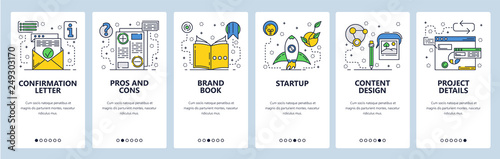 Wall mural web site onboarding screens. new project launch, pros and cons. menu vector banner template for webs