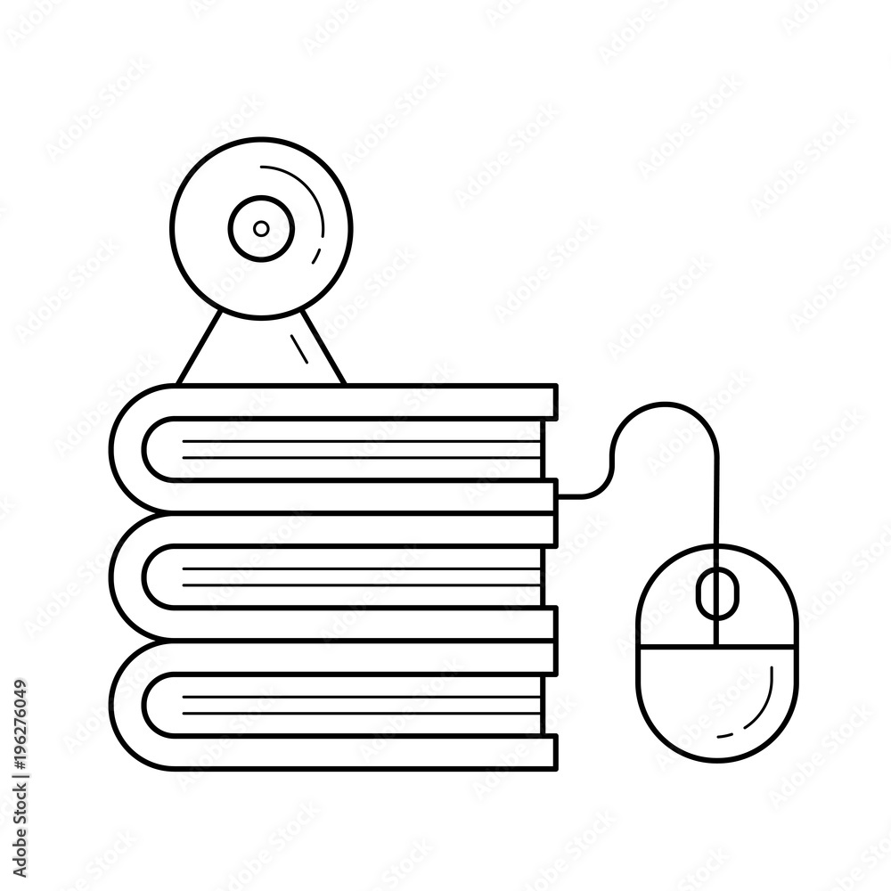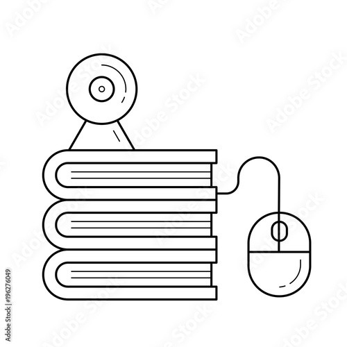 Wall mural : Webcam and computer mouse connected to the ebook vector line icon isolated on white background