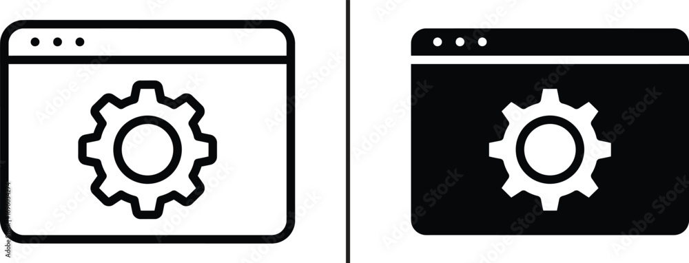 Wall mural webpage setup icon: conceptual depiction of a website window featuring a gear, representing settings - Wall murals Wall mural webpage setup icon: conceptual depiction of a website window featuring a gear, representing settings - Wall murals
