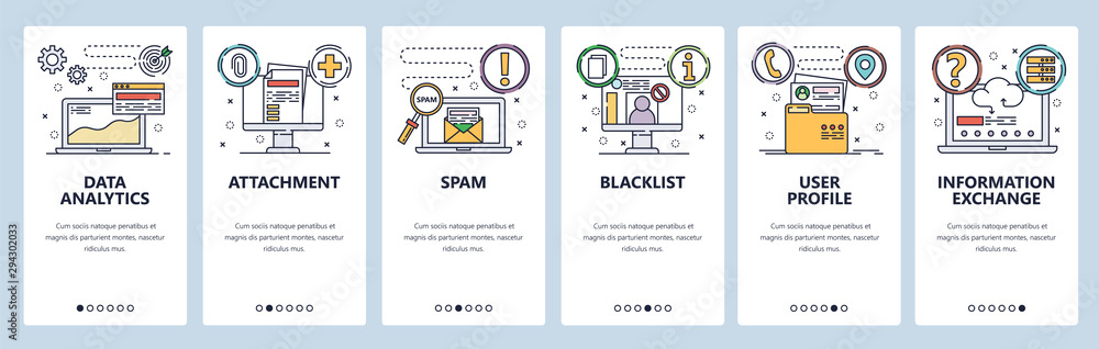 The watermark will not be included on Wall mural.: Website and mobile app onboarding screens vector template