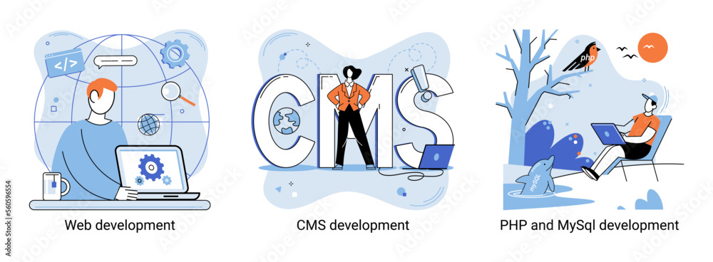 Wall mural : Website architecture concepts metaphor - web development, php and mysql, cms, interface design, softw