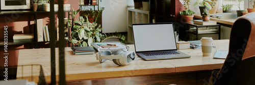Wall mural website banner of empty programmer work zone decorated with green plants in office of it company - Wall murals Wall mural website banner of empty programmer work zone decorated with green plants in office of it company - Wall murals