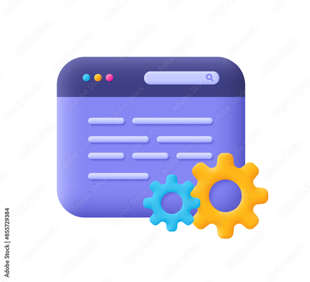 Wall mural : Website browser and gear cogwheel - web optimization, web development, setting and maintenance - 3d ve
