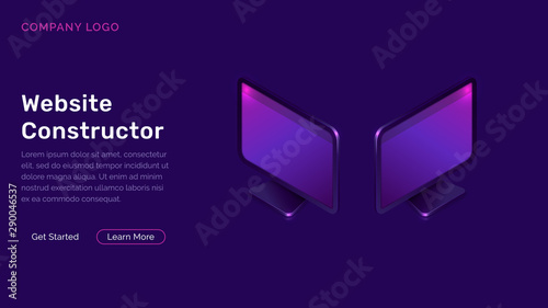 The watermark will not be included on Wall mural.: Website constructor isometric concept vector illustration - software landing page template for creati