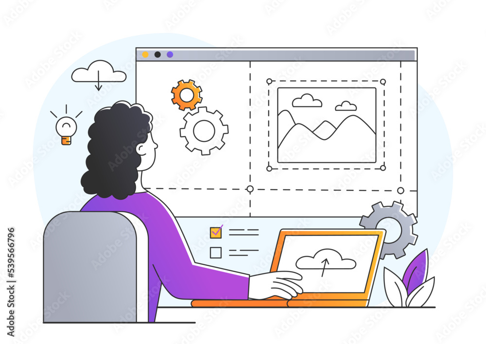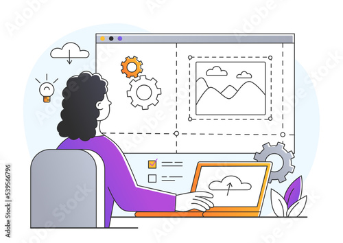 The watermark will not be included on Wall mural.: Website creator concept - graphic designer develops interfaces for programs and applications - remote