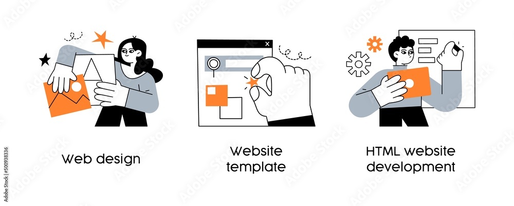 Wall mural website design and development- set of business concept illustrations. web design, website template,