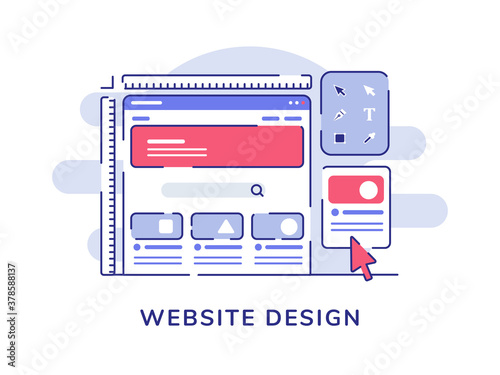 Wall mural website design concept wireframe ui develop process on computer screen with flat outline style