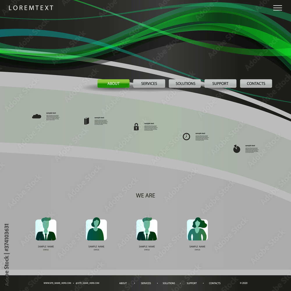 Wall mural website design template for your business with green and grey wavy texture, lines in the header