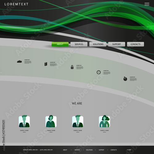 Wall mural : Website design template for your business with green and grey wavy texture, lines in the header