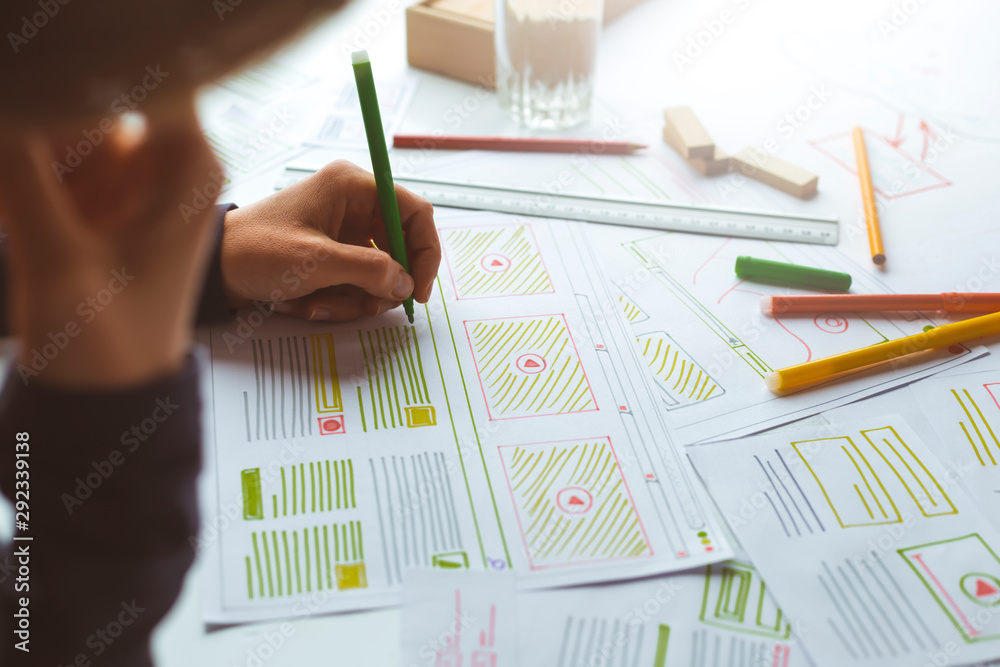 Wall mural website designer creates a sketch application. developing a project drawing an interface mockup. - Wall murals Wall mural website designer creates a sketch application. developing a project drawing an interface mockup. - Wall murals