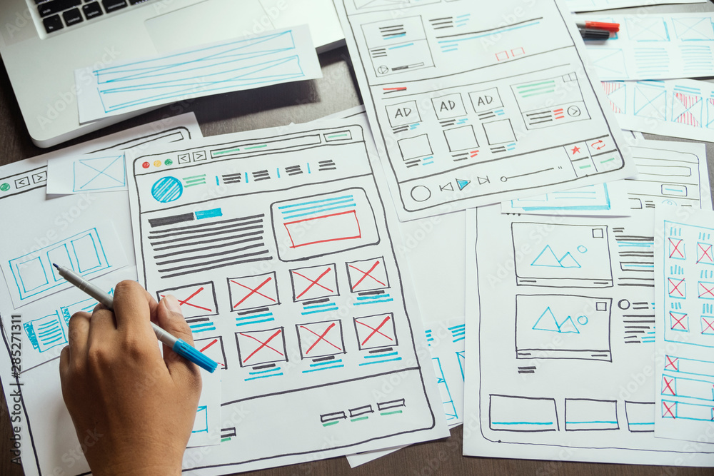 Website designer creative planning application developer development draft sketch drawing template lWall mural