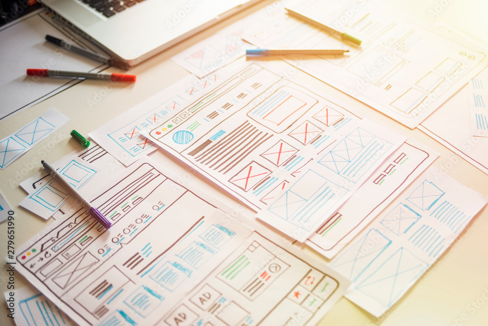 Wall mural website designer creative planning application developer development draft sketch drawing template l