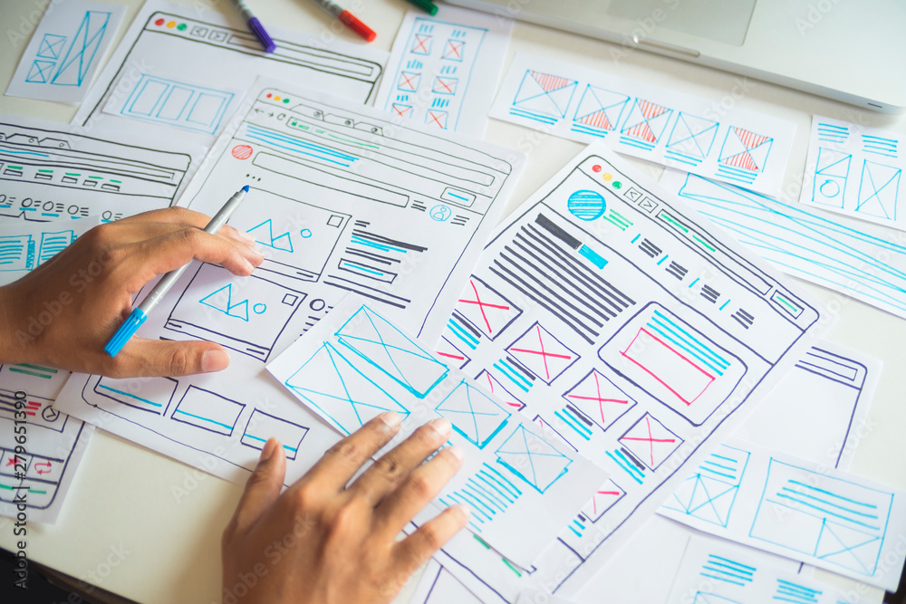 Website designer creative planning application developer development draft sketch drawing template lWall mural