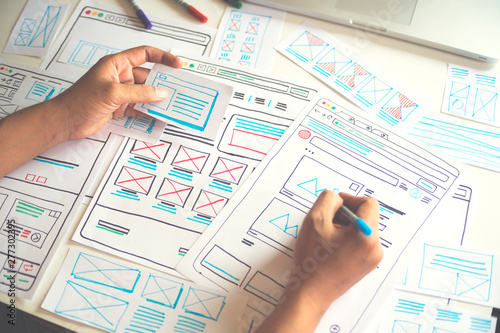Website designer creative planning application developer development draft sketch drawing template lWall mural