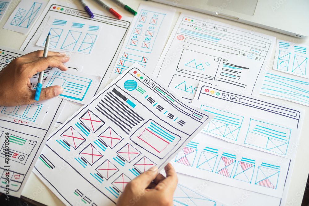 Website designer creative planning application developer development draft sketch drawing template lWall mural