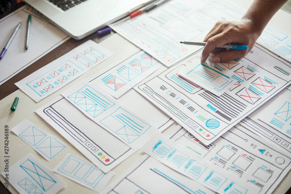 Website designer creative planning application developer development draft sketch drawing template lWall mural