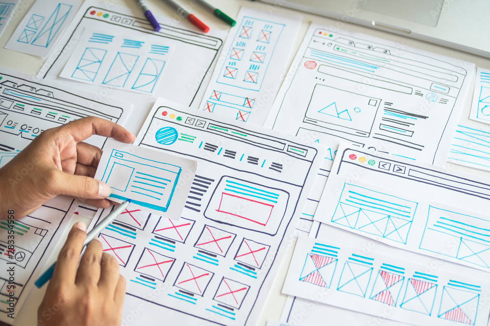 Website designer creative planning application developer development draft sketch drawing template lWall mural