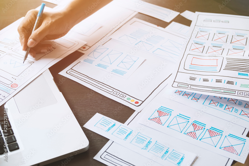 Website designer creative planning application developer development draft sketch drawing template lWall mural