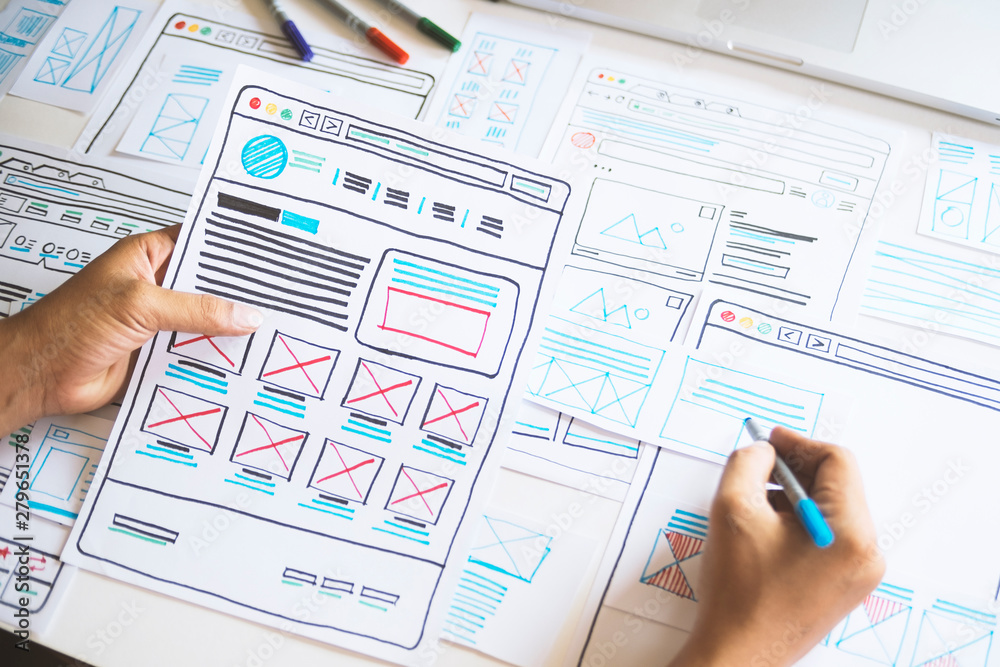 Website designer creative planning application developer development draft sketch drawing template lWall mural