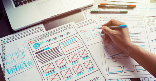 Website designer creative planning application developer development draft sketch drawing template lWall mural