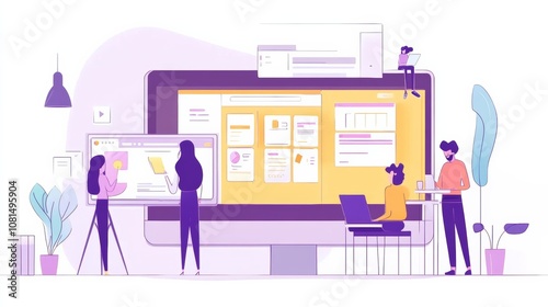 Wall mural website designer creative planning application development draft sketch drawing template layout fram