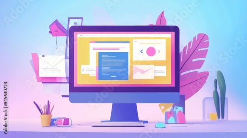 The watermark will not be included on Wall mural.: Website designer creative planning application development draft sketch drawing template layout fram