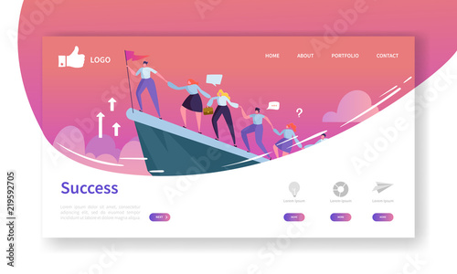 Wall mural website development landing page template. mobile application layout with flat businessman leader on - Wall murals Wall mural website development landing page template. mobile application layout with flat businessman leader on - Wall murals