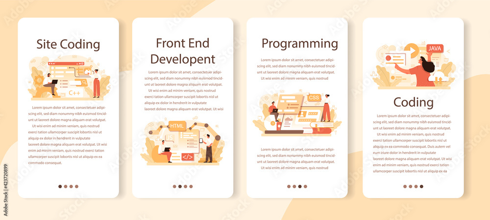 Wall mural website development mobile application banner set. support and development