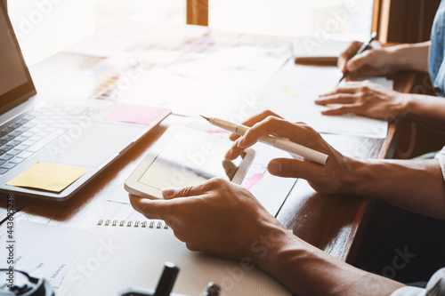 Wall mural : Website development ui/ux - designer brainstorming application for mobile creative digital concept