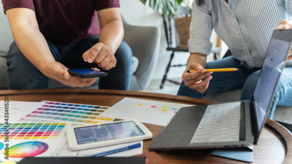 Wall mural website development ui/ux. designer brainstorming application for mobile creative digital concept