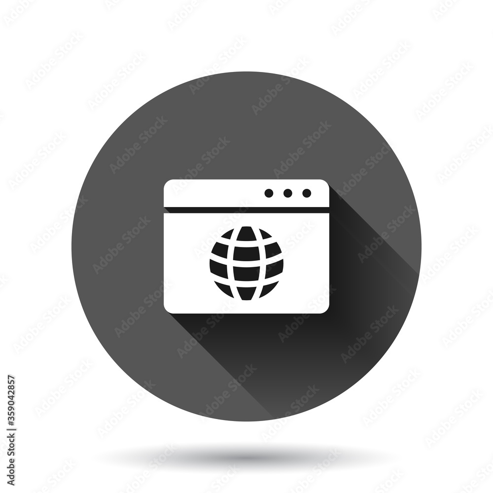Website domain icon in flat style - global internet address vector illustration on black round backgrWall mural