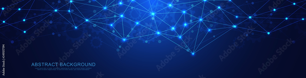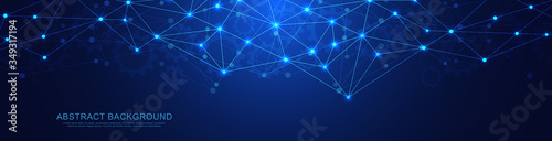Wall mural : Website header or banner design with abstract geometric background and connecting dots and lines - gl