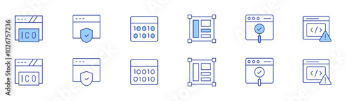 Website icon set in two styles, duotone and thin line style - editable stroke - ico, layout, web securWall mural