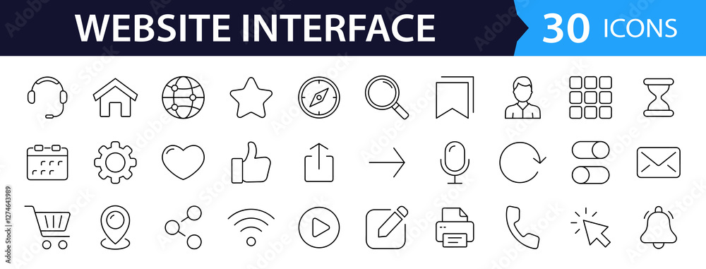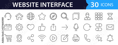 The watermark will not be included on Wall mural.: Website interface set of web icons in line style - basic ui/ux icons for web and mobile app - containi