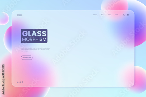 Wall mural : Website landing page template in glassmorphism style - horizontal website screen with glass overlay e