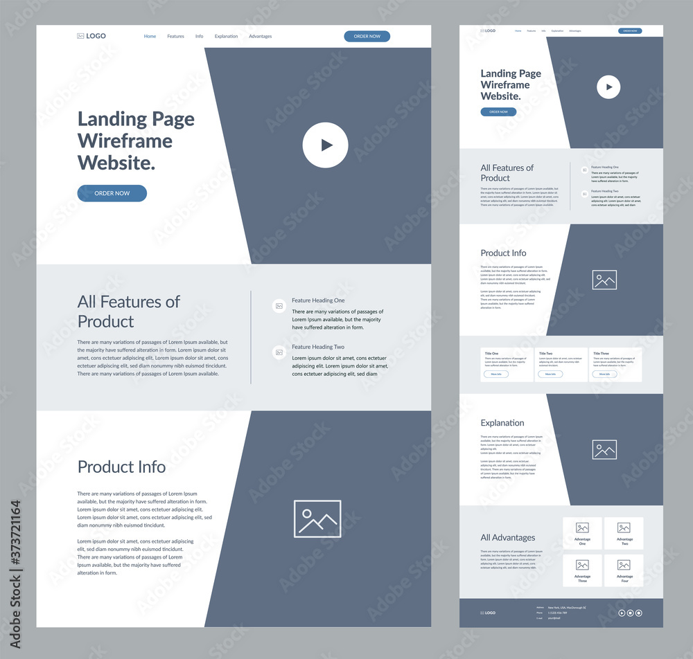 Wall mural website landing page wireframe design for business. one page site layout template. modern flat ux/ui - Wall murals Wall mural website landing page wireframe design for business. one page site layout template. modern flat ux/ui - Wall murals