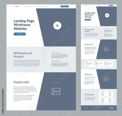 Wall mural : Website landing page wireframe design for business - one page site layout template - modern flat ux/ui