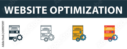 Wall mural website optimization icon set. four elements in diferent styles from seo icons collection. creative
