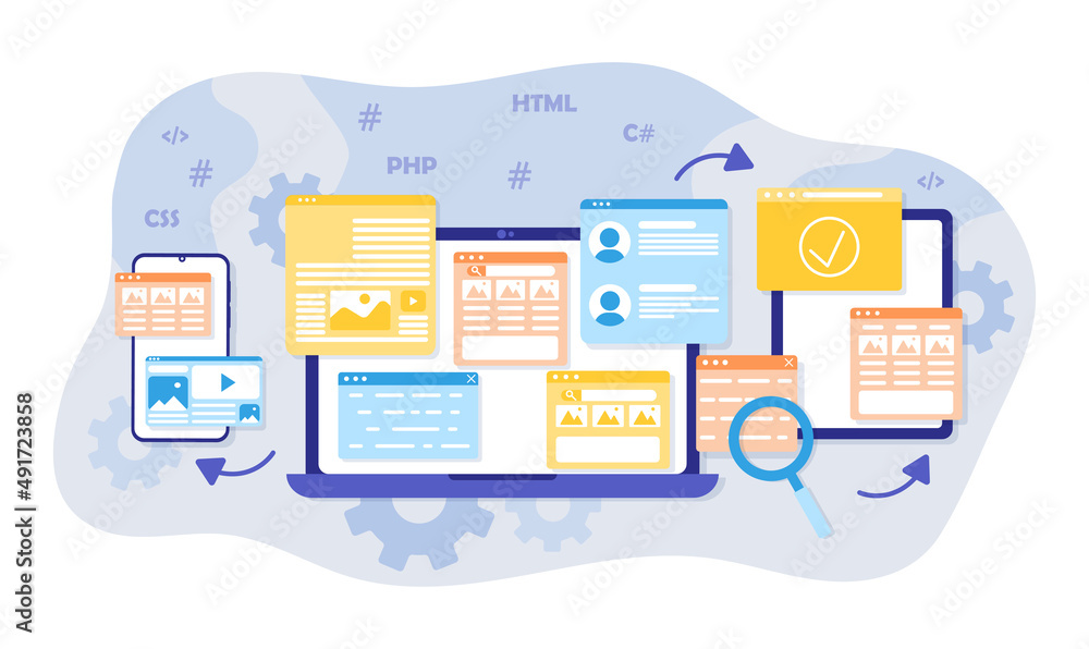 Wall mural : Website page development - interface and design for website, programmers and designers, freelancers -